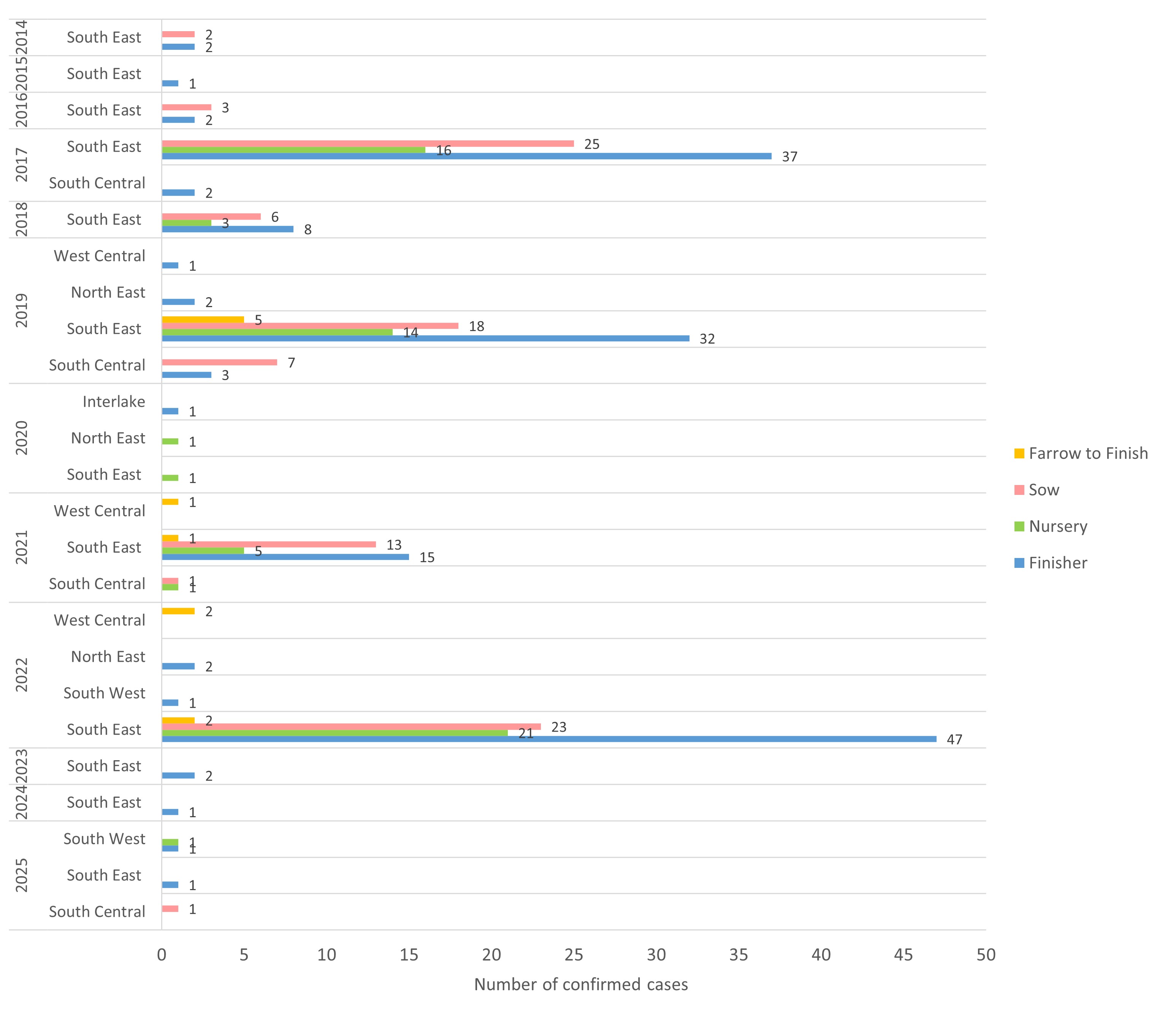 17 decembre 2025, 186 sites manitobains, pour un total de 333 cas, ont été précédemment confirmés comme ayant été infectés par la DEP. La plupart des sites n’ont été infectés qu’une seule fois, mais plusieurs d’entre eux l’ont été de manière récurrente.