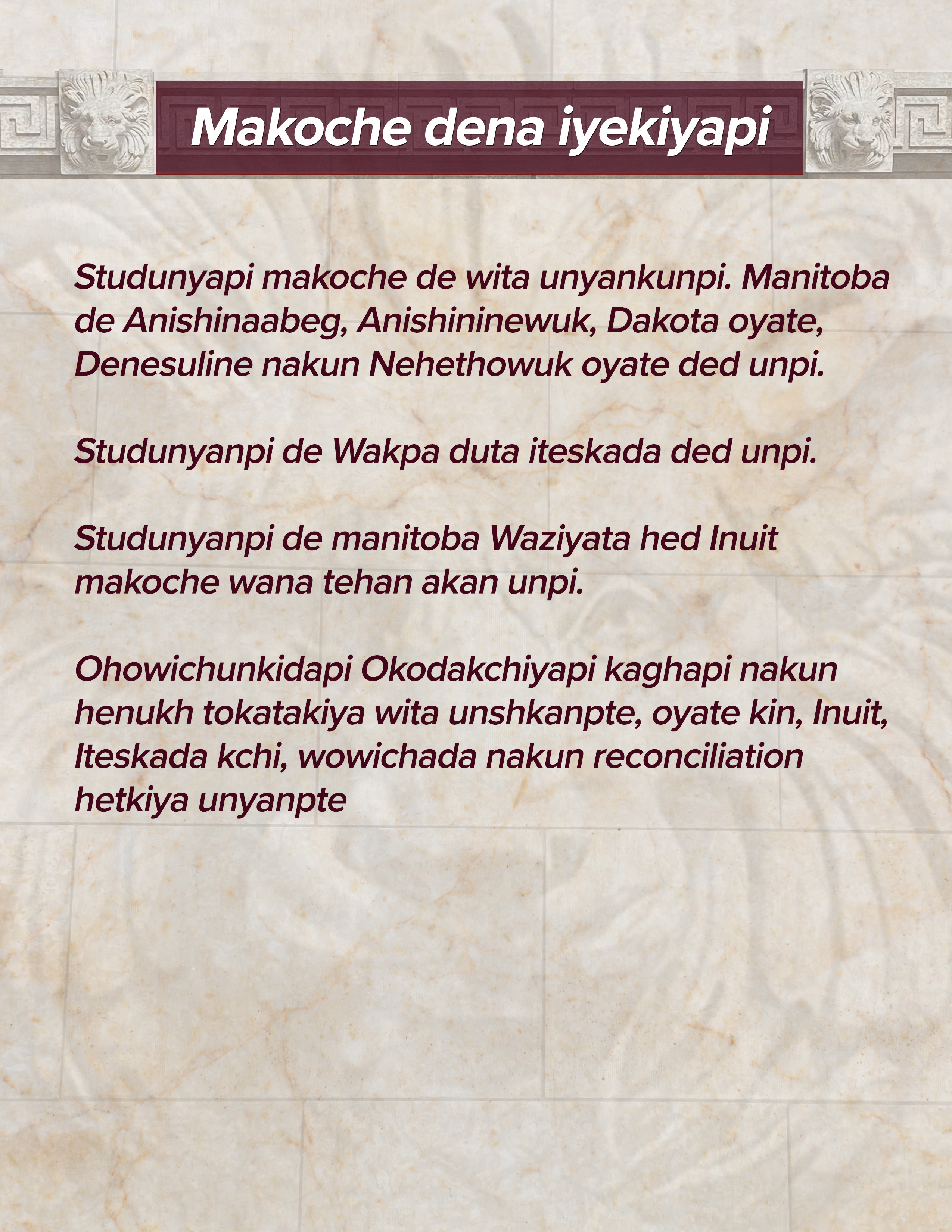 We acknowledge northern Manitoba includes lands that were and are the ancestral lands of the Inuit.