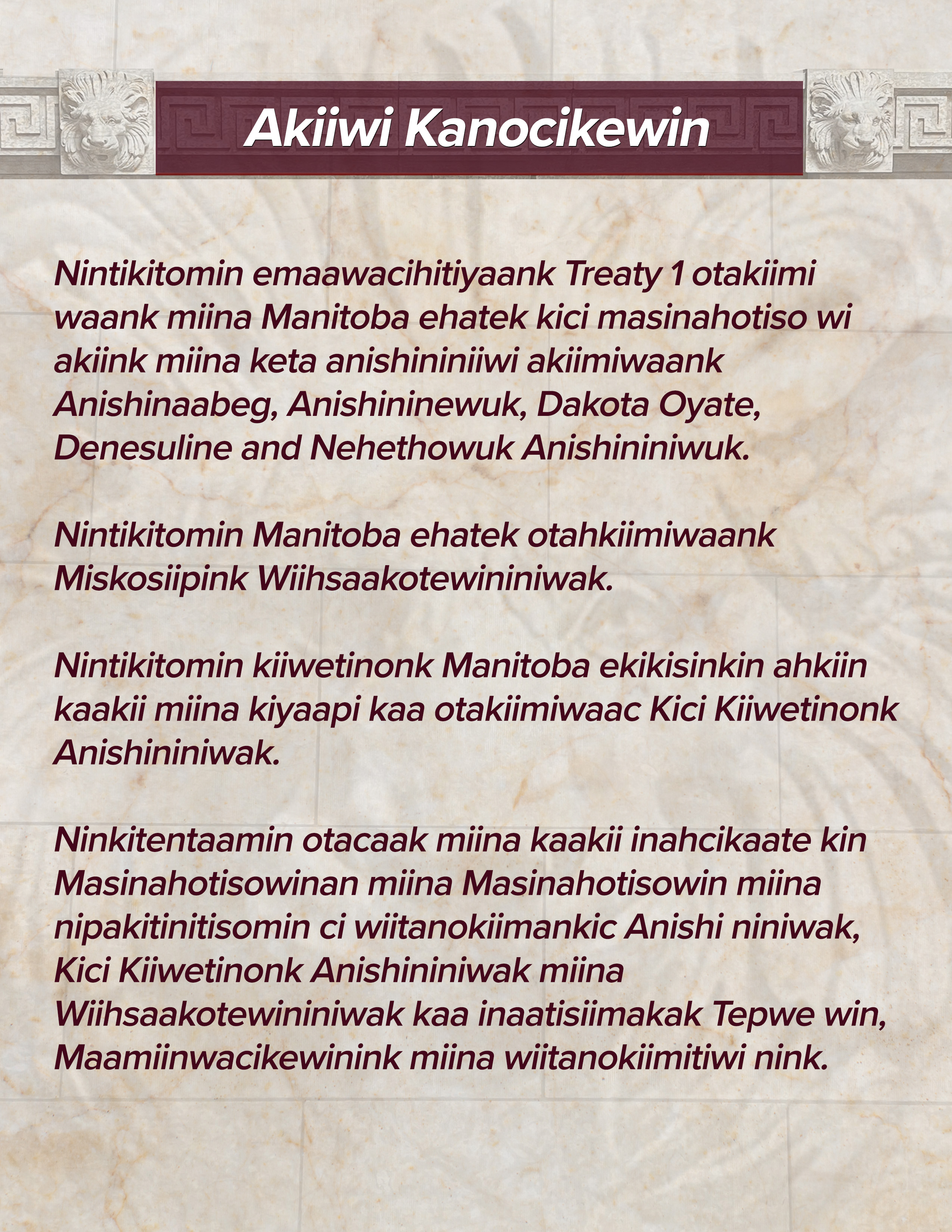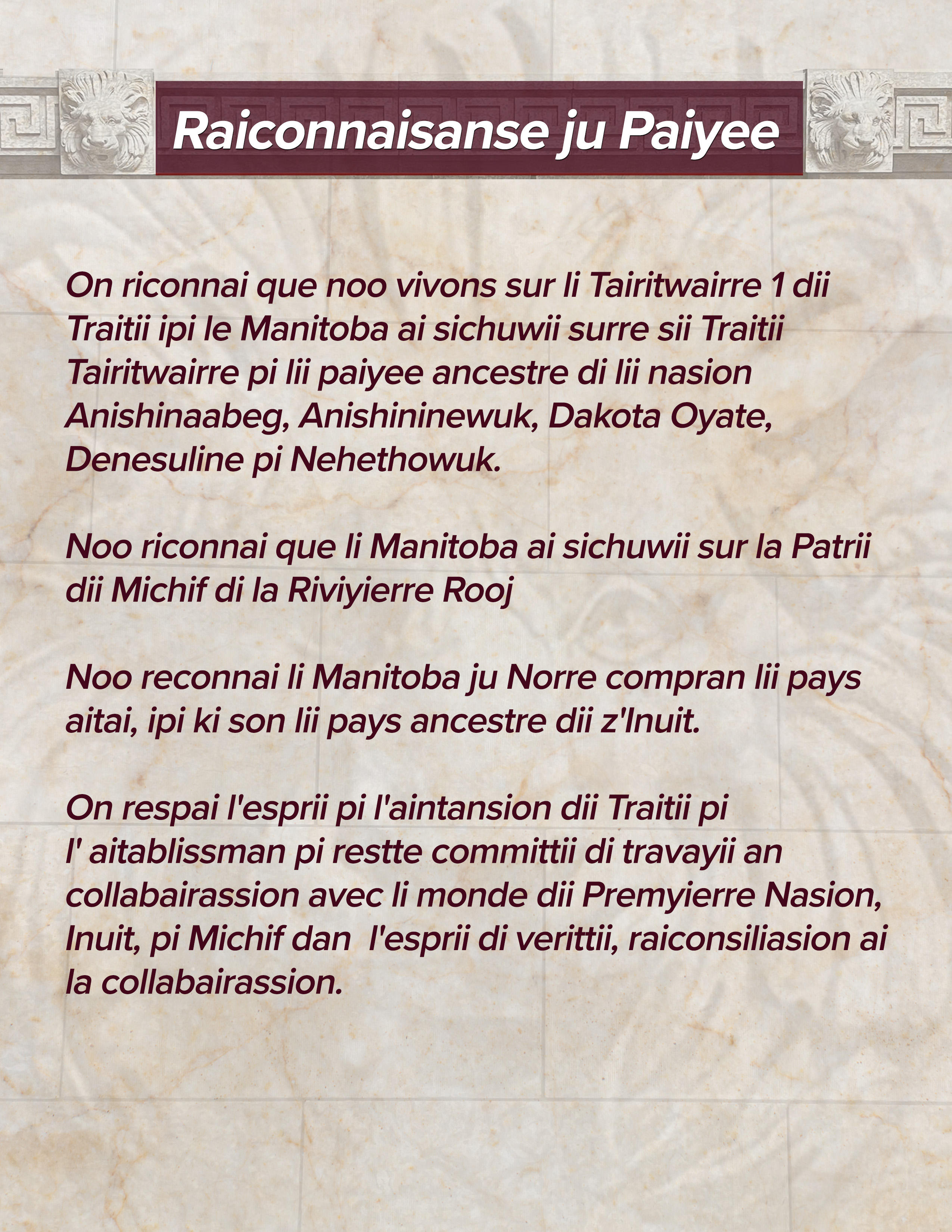 We acknowledge we are gathered on Treaty 1 Territory and that Manitoba is located on the Treaty Territories and ancestral lands of the Anishinaabeg, Anishininewuk, Dakota Oyate, Denesuline and Nehethowuk Nations.
