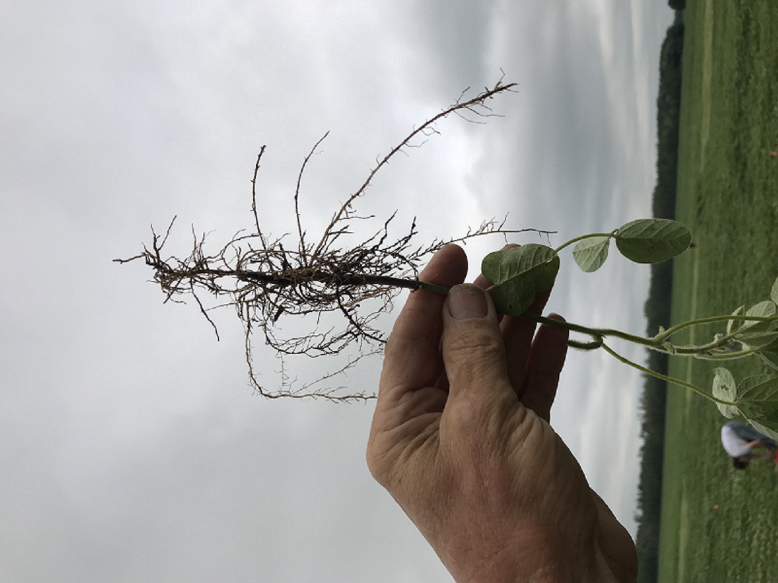 Impressive vegetative topgrowth, but no nodules on roots | High residual soil nitrogen. For more information see Checking for Soybean Nodulation and Intervention for full PDF report (700 KB) |