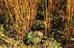 Figures 2 and 3. Red clover growth prior to cereal harvest after spring broadcast seeding into winter wheat (left) or seeded with spring cereals (right). - Red clover can be seeded too early. Two to three week old seedlings are less tolerant of frost than younger seedlings. One week old seedlings may tolerate -4°C. This sensitivity to frost may account for some of the uneven establishment some years.