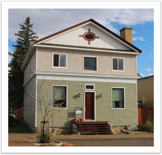Built in 1910, the Canadian Bank of Commerce is one of the few that remain from some 70 prefabricated wooden branches opened by the bank across the Prairies in the boom years before World War I. Designed and shipped by rail from Vancouver by the B.C. Mills Timber and Trading Company, the structure’s components, including numbered pre-painted panels, arrived at Rivers in two boxcars and were said to have been erected by a crew on a prepared foundation in two days. The two-storey design, designated “Number 2,” featured a modest, classically appointed facade in three bays separated by paired pilasters on the main floor, with the gable front reading as a shallow pediment; a commodious manager’s residence occupied the second floor. Located on the main street near the railway facilities that sustain the town, the bank has seen several transformations, most recently to a private dwelling, reflecting the evolution of the local economy.