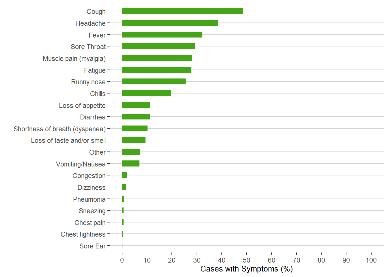 Note: Other symptoms include those less common symptoms such as sweating, runny eyes, itchy throat, etc.