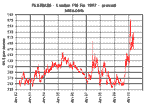 London Palladium Fix: 1992 - June, 2000. Displays the use in Palladium and Platinum rise due to increased fabrication, primarily in the automotive sector. (Graphs from www.kitco.com)