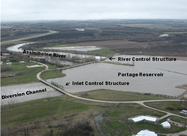 - a River Control Structure that acts as a dam and spillway along the Assiniboine River downstream of the diversion channel